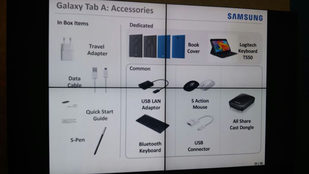 The Samsung Galaxy Tab A will also have a handful of optional accessories available for purchase, which include dedicated book covers for the Tab A as well as keyboards and adaptors.