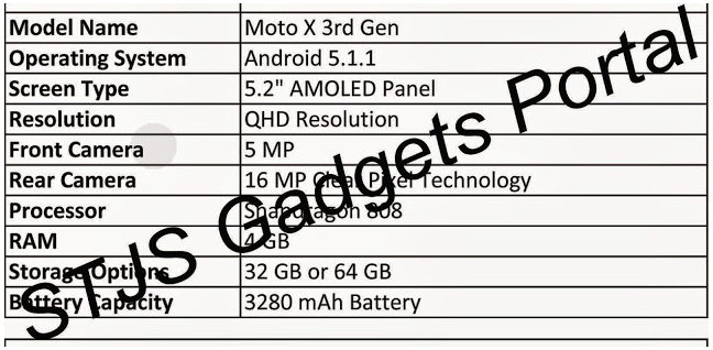 If the specs are true, the 3rd gen Moto X is looking pretty good, with a Snapdragon 808 under the hood with a huge 4GB RAM which is becoming popular for more phones as of late. The phone will also have a 5.2″ AMOLED display as well as a 16 megapixel rear camera and 5 megapixel front camera combo for the shutterbugs. It will sport Android 5.1.1 out of the box and will have a 32GB or 64GB storage variant with a huge 3280mAh battery.