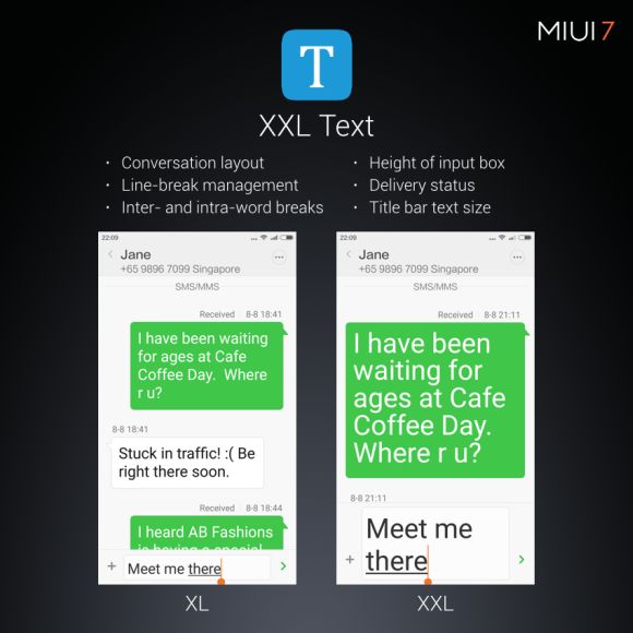 Especially for the elderly, viewing normal text size can be a strain. While you can easily bump up the text size, the execution isn’t always perfect with broken lines and ugly alignment. With MIUI 7, it now offers an even larger XXL size and it is done beautifully in any screen without breaking its original layout design.