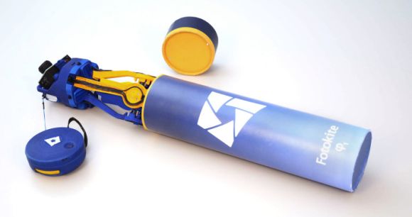 Weighing only 12 ounces / 341 grams (including the battery and camera) the Fotokite Phi can fold itself to maximise space and is kept away in its packing tube. Twist gestures command the device to start-up and turning min-flight is manipulated by a button click and similar flick of the wrist, while the leash can be slacked to provide a wider viewing area for stills and video.