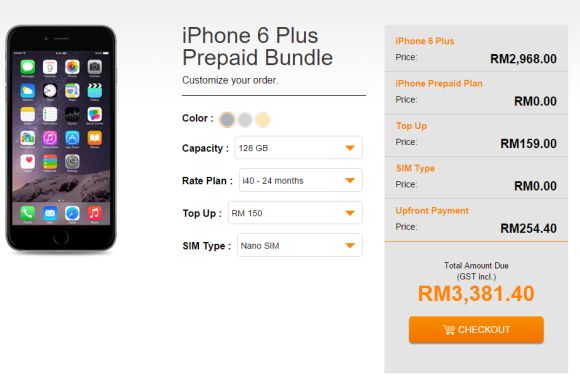 If you look at the iPhone 6 Plus offer, the largest 128GB is going for RM3,381 all in (inclusive of GST, upfront top up and payment). That’s cheaper than the iPhone 6 Plus 64GB priced at RM3,699 currently.