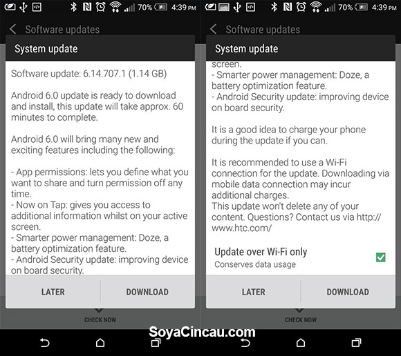 The software update sizes in at 1.14GB and according to HTC, it’ll take an hour for the whole upgrading process to finish.