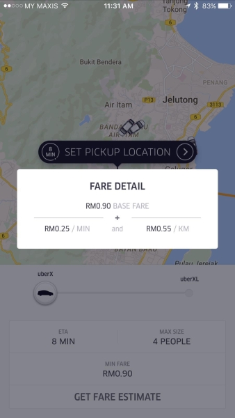 Previously, those riding on uberX in Penang were charged at RM1.50 for base fare followed by RM0.30/minute and RM0.60/KM. So they’ve lowered the base fares by RM0.60 and decreased the per minute cost from RM0.30 to RM0.25. Per kilometer pricing has also been reduced to RM0.55.