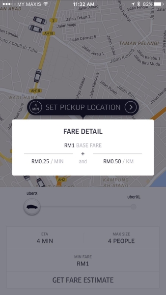 Previously, those riding on uberX were charged at RM1.50 for base fare followed by RM0.30/minute and RM0.60/KM. So they’ve lowered the base fares by RM0.55 and decreased the per minute cost from RM0.30 to RM0.25. Per kilometer pricing has remained at RM0.60.