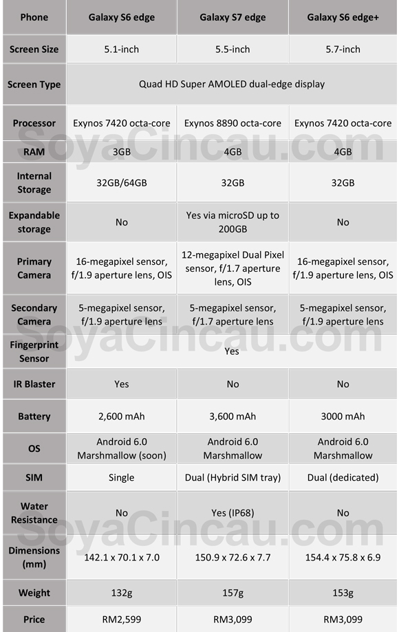 Beyond the initial drop in the S6 edge’s price (to RM2,599) Samsung aren’t going to alter its price or the S6 edge+’s launch price. That means the older S6 edge+ will be priced at the same point as the S7 edge.