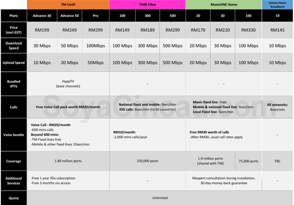 In all honesty, these four companies aren’t exactly direct competitors because (especially in the case of TIME) you either have one or the other. Besides Maxis, Celcom and TM, these services rarely overlap.
