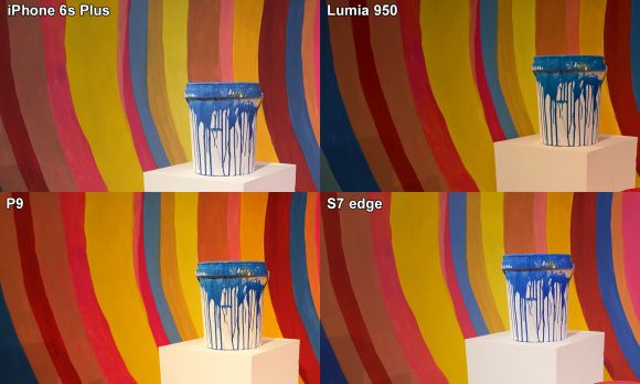 For this colourful indoor shot with yellow lighting, the P9 has better colour contrast while the S7 edge offers better white balance. The iPhone 6s Plus looks alright with good white balance but the colours appear to be slightly washed out. Meanwhile, the Lumia 950 offers greater detail with a higher resolution shot but it looks darker than the rest.