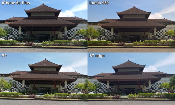 In outdoor situations, the Lumia 950 takes advantage of its 20MP count to capture more details. The rest of the trio performed quite well and both the P9 and S7 edge appears to have some form of post-processing sharpening applied.