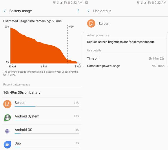 It can also keep going for a long time as the Note7 has excellent battery life thanks to the larger 3,500 mAh cell (up 500 mAh from the Note5). I was easily getting 5 hours of screen-on time on what I’d call fairly heavy usage with lots of navigation, camera, messaging and some gaming.