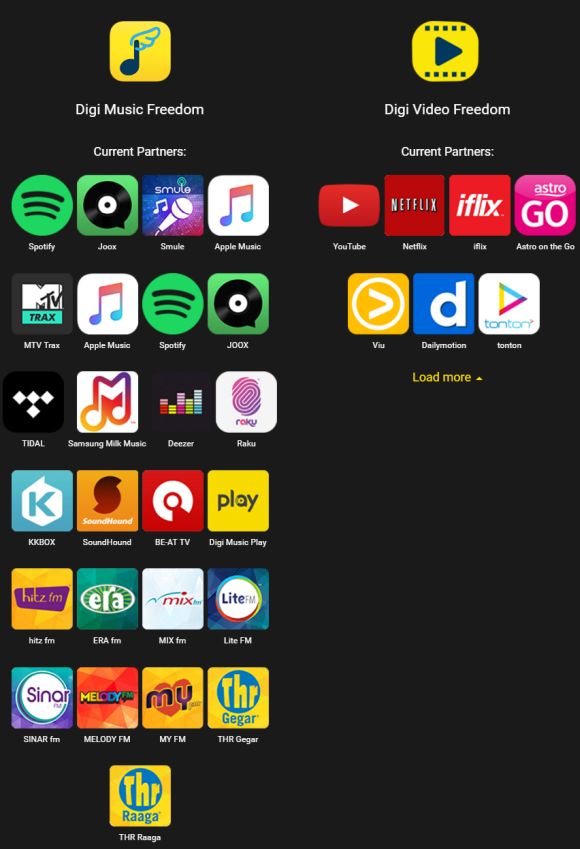 The list of supported Digi Music and Video freedom platform are as follows:
