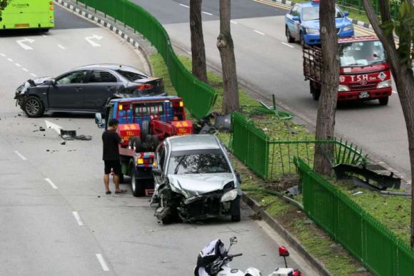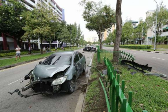 The man referred to only as Yeo, then shot into the right lane and collided into another vehicle before both cars went crashing into the centre divider. The impact caused the divider to break and several metal rods from the divider was sent flying to the opposite side of the road.