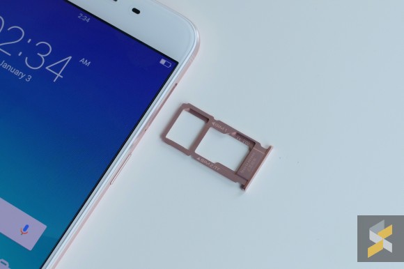 Since it’s the smaller of the R9s duo, it has a 5.5-inch Full HD display in front that’s tucked under the protective arm of Corning’s Gorilla Glass 5. Keeping everything powered is a 3,010 mAh battery that has support for OPPO’s excellent VOOC Flash Charge fast-charging technology which is a nice touch. Although this is a dual-SIM smartphone, the second SIM shares its slot with the microSD card so you’ll have to pick one over the other.