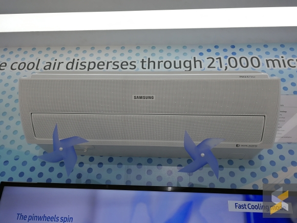 Well, that depends on your definition of wind. The new wall-mounted Wind-Free AR9500 air-conditioning unit is designed to keep a room cool without the cold wind blowing directly at you. It does this by dispersing the cold air through 21,000 micro holes at speeds below 0.15m/s. This means, although you don’t have a strong current blowing directly at you, if you stand close enough to the air-conditioner, you can feel the cold air oozing out of it and it feels a lot like standing in front of your fridge with the door open.