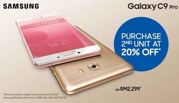 If you missed Samsung Malaysia’s pre-order offer for the Galaxy C9 Pro, not to worry. Samsung has kicked off another round of 20% off promo when you purchase a second unit of their new Galaxy C9 Pro.