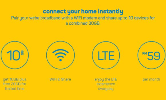 To recap, there’s only one webe broadband plan which costs just RM59/month for 10GB of data. As a limited time promo, they are offering additional 20GB data which gives you a total of 30GB each month. Unlike its earlier promo, webe will be offering the free extra data until further notice. If there are any changes to this promotion, webe promises to inform all subscribers at least 30 days in advance.