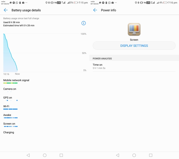 Through my observations, it seems that the phone is very busy in the background even when the display is off — which I suspect may have something to do with EMUI’s algorithm of memory management.