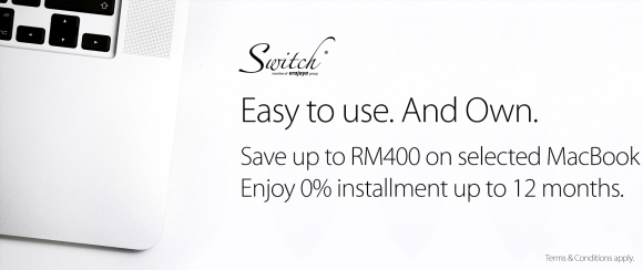 The discount varies depending on the model. The MacBook Air is getting a RM288 discount while the compact MacBook and previous generation MacBook Pro gets RM400 off. You can also purchase it with a 12 month 0% instalment plan when you get it with an Apple Care Protection Plan. In addition, Switch is also offering RM100 off on Microsoft Office.