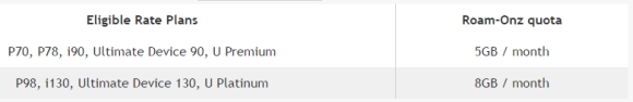 UPDATE 2: Quota allocation from Roam-Onz has been revealed. For customers on the P70, P78, i90, Ultimate Device 90, and U Premium, you will be getting 5GB/month. If you’re on P98, i130, Ultimate Device 130, and U Platinum, you will receive 8GB/month.