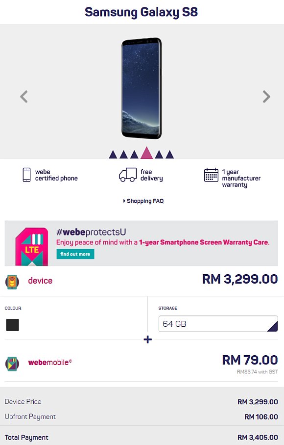 For webe, they are offering devices without contract so you’ll need to pay the full retail price which is RM3,299 for the Galaxy S8 and RM3,699 for the Galaxy S8+. During sign up, you are also required to pay an extra RM106 as upfront payment since you’re signing up for a webemobile postpaid plan. This gives you unlimited calls, SMS and data for RM79/month.