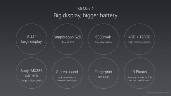 Kicking things off, the Mi Max 2 is powered by a 14nm Snapdragon 625 octa-core processor, which isn’t too surprising since Xiaomi is also using that chip in the Redmi Note 4. Although it’s a slight downgrade in performance from the Snapdragon 650 hexa-core chip, the Snapdragon 625 is a lot more power efficient. This means that you can expect awesome battery life (2 days, according to Xiaomi) from the Mi Max 2 since it’s got a massive 5,300 mAh battery now.