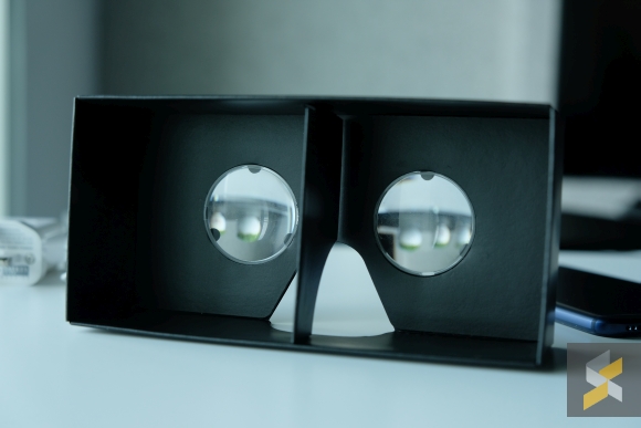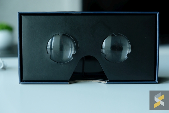 Well, when we say headset, we mean it more like Google’s Cardboard. It’s got a very DIY feel to it and the instructions are printed on the side of the box.