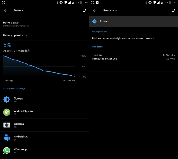 With this new device, I’m averaging just shy of four and half hours of screen on time (SOT) (moderate usage) with at least 12 hours on battery. That’s an hour and a half better SOT than my average with the OnePlus 3. If my usage gets a little heavier (lots of camera and navigation), that drops closer to four hours.