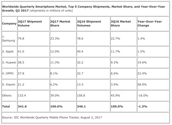 UPDATE: IDC has also published its Q2 2017 report with Xiaomi clinching the #5 spot.