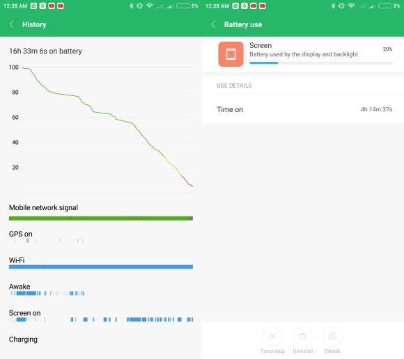 Battery performance is also a bit of an issue on the Mi 6 not because it can’t usually last me a full day, but because I thought it would do much better. On average, I’m getting 4 hours of screen-on-time (SOT) for a full day with moderate usage. Heavier use brings it to 3 and a half to 3 and a quarter hours of SOT. This is decidedly average and about the same as what I got with the HTC U11. The thing is, the U11 has a much smaller 3,000 mAh battery. Xiaomi’s flagship has 3,350 mAh with a lower resolution display, so why isn’t it better? At least charging speeds are pretty good as I was able to top up the battery from 5% in just one and a half hours while thirty minutes gave me 56%.