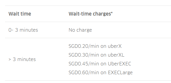 The wait-time charges will kick in after 3 minutes upon the arrival of the driver. On UberX, Uber charges S$0.20/minute and it costs S$0.30/minute on UberXL. The charges go up with more premium options with the going rate of S$0.45/minute on UberEXEC and S$0.60/minute on EXECLarge. The charges are pro-rated which means that if the total wait time is only 30 seconds on UberX after the charges kick-in, you’ll be charged S$0.10.