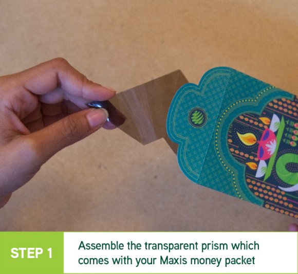 These are limited edition money packets which can transform into holographic light. In each packet, you’ll find a transparent plastic which can fold into a prism. Once assembled, you can scan the QR code to play a YouTube video on your phone, then place the prism on top of the screen to watch the magic unfold.