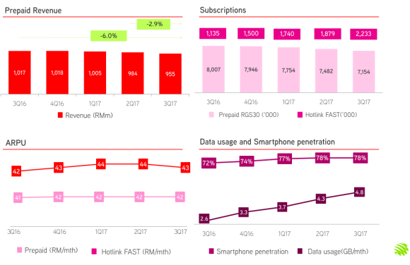 Meanwhile, Maxis prepaid subscribers have dropped from 8.007 million users in Q3 2016 to 7.154 million users in Q3 2016. Despite that, they managed to double their Hotlink FAST customer base from 1.135 million to 2.23 million in one year.
