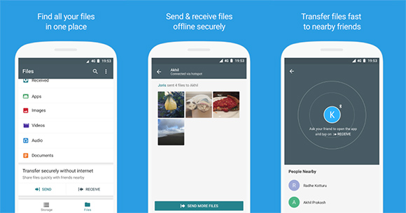 The app is mostly a mix between a file manager and a file sharing app, which allows you to not just easily manage all the stuff that’s sitting in your phone but also send files to others who are also using the app.