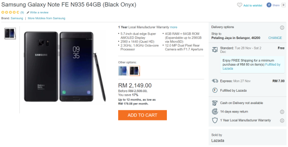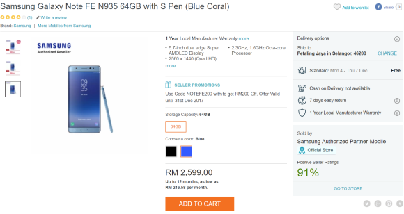 On the official Samsung Malaysia official store, they are offering RM200 off on the Galaxy Note FE with the voucher code NOTEFE200. This brings the price down to only RM2,399. On top of that, they are offering 20% off on AirAsia X flights which is redeemable via the MySamsung app.