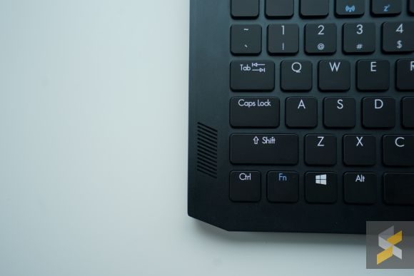 What did surprise me though, is the keyboard. It’s got a mechanical keyboard that I was not a big fan of the first time I typed on it. The chiclet keys are shallow and require quite a bit of force to actuate so it really threw me off as someone who likes Cherry MX Brown and Blue switches. The entire keyboard was also really close to the edge of the laptop which made me feel like they should have included a wrist rest as well.