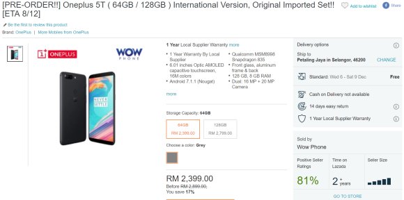 If you really can’t wait, there are import sets of the OnePlus 5T being offered on Lazada Malaysia. Fulfilled by WOW Phone, they are offering the 6GB RAM + 64GB storage model at RM2,399, while the 8GB RAM + 128GB storage option is going for RM2,799. According to the listing, stocks will be available on 8 December 2017.
