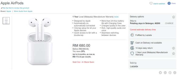 One of the most interesting offers is the Apple AirPods. Retailing at RM849, the online store is selling them for only RM680. That’s a massive 20% off but unfortunately, it is out of stock at the time of posting.