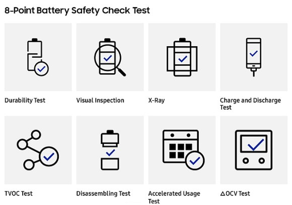After what happened with the Note7, Samsung completely revamped the quality and safety checks for the batteries in their devices with their 8-Point Battery Safety Check which consists of the following tests: