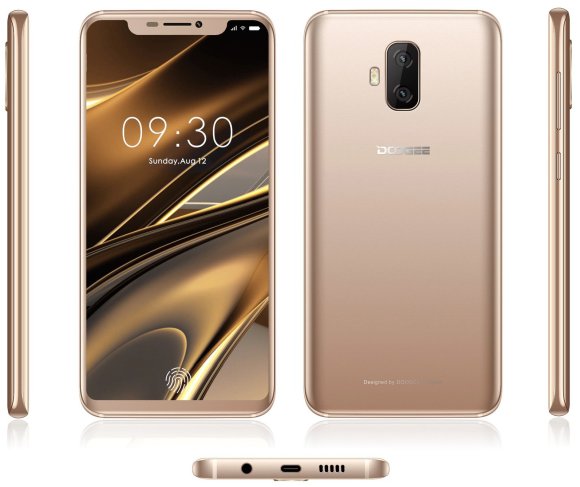 According to serial leakster @evleaks, the phone pictured here is the Doogee V. It comes with a 6.2″ display that has the iPhone X’s iconic notch, while the rest of the phone looks like Samsung’s upcoming Galaxy S9+ flagship.