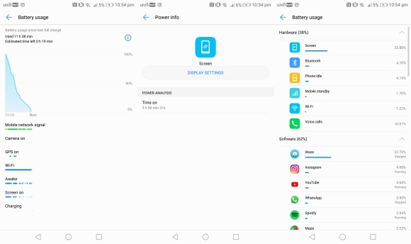Most days, I was averaging 4.5 hours of screen on time with about 14 hours on battery. Moderate usage pushed that up to 5 hours of screen on time with 15 hours time on battery. I’m hearing reports of Mate 10s lasting 1.5 days on a single charge, but I’ve personally never been able to squeeze more than a day out of it. I am a pretty heavy user, so your mileage may vary.