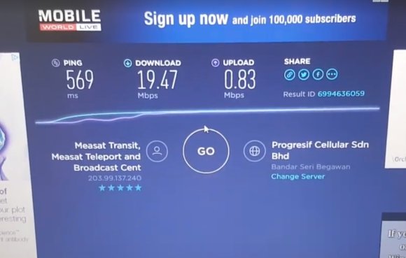 With a laptop hooked up to a modem and a satellite dish, they managed to achieve 19.47Mbps downloads with an upload speed of 0.83Mbps. This is higher than its advertised download speed of 15Mbps.