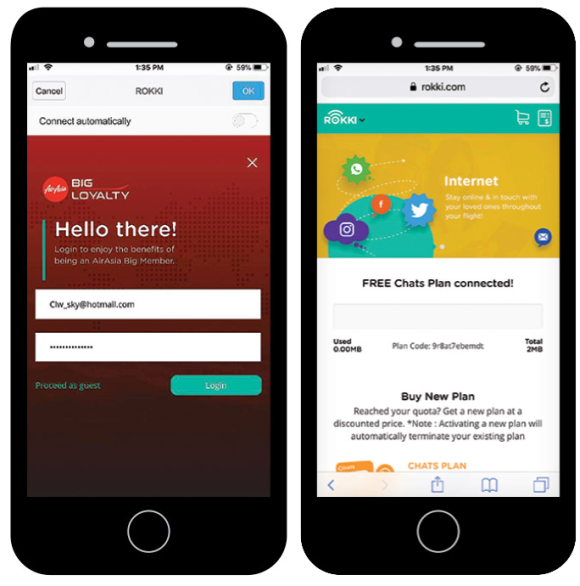 To redeem this Free WiFi offer, all you’ll need to do is connect to an AirAsia ROKKI hotspot during your flight and login with your BIG account at rokki.com. Take note that AirAsia is only providing 2MB of data which is meant for WhatsApp, WeChat, LINE, KakaoTalk and Viber.