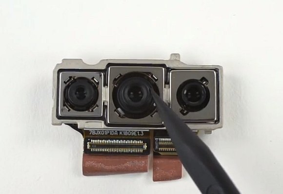 In their teardown, the triple-camera comes in a single piece module that has two connectors. On the far left is its 20MP f/1.6 monochrome shooter and next to it is its epic 40MP camera with a f/1.8 aperture lens. At the far right is the 8MP f/2.4 telephoto lens that has 3X Optical Zoom. You can learn more about the camera setup here.