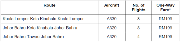 According to AirAsia, they are adding 120 additional flights between 7 to 10 May. 20 of these flights will be utilising their Airbus A330 aircraft that has 377 seats. Below is the full list of additional flights.