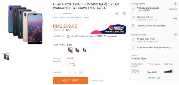 UPDATE: The same retailer on Lazada is offering the triple-camera Huawei P20 Pro at RM3,149. That’s RM150 off its official retail price tag.