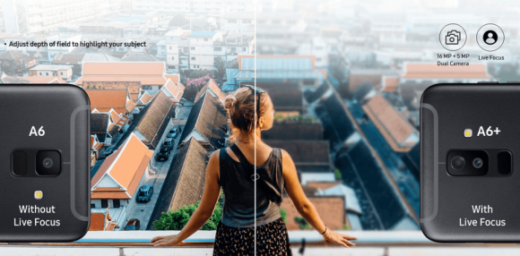 Both models get a primary 16MP main camera with f/1.7 aperture lens while the A6+ has an additional 5MP f/1.9 camera for depth of field effects. With the dual-camera setup on the Galaxy A6+, you can take pictures with bokeh effects with its Live Focus feature.