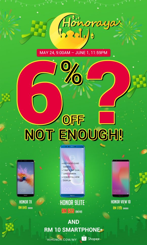 honor is having an ‘honoraya’ promotion which will run from the 24th to 28th May 2018 on honor’s official web-store on Shopee and from 24th May till 1st June 2018 on their Vmall platform.