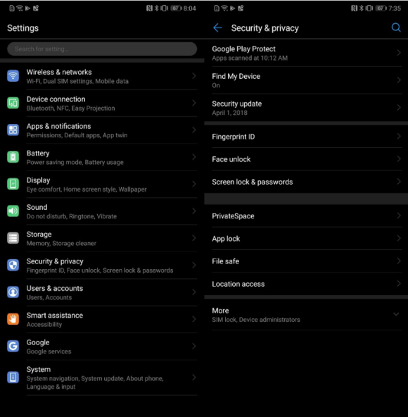 Huawei also has a disclaimer that Face Unlock is less secure than other unlock methods such as pattern, PIN and password. It also mentions that people or objects that resemble you might unlock your device.