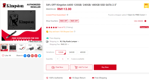 Is your laptop still using a hard disk drive? For faster performance, you can consider switching to Solid State Drive (SSD). If you’re looking for an affordable upgrade, a retailer on Shopee is offering Kingston SSDs with discounts of up to 54% off.