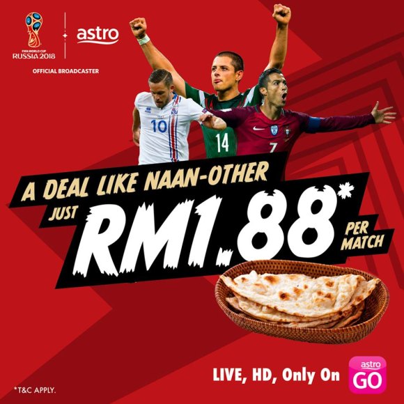 UPDATE: Astro is also offering a World Cup Knock-out Pass for RM30. This gives you access to watch the remaining 16 matches live in HD on Astro Go. If you’re interested, you can purchase it here.