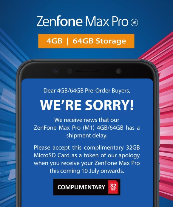 If you’ve ordered the 4GB RAM + 64GB storage version, ASUS Malaysia has just announced that there will be a delay of shipment until the middle of next month.